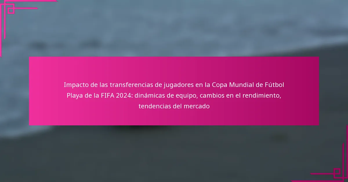 ¿Cómo impactan los traspasos de jugadores en la dinámica del equipo en la Copa Mundial de Fútbol Playa de la FIFA 2024?